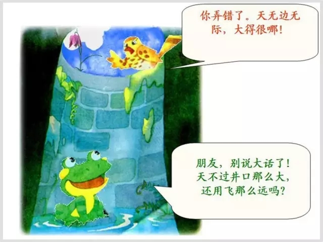 雖說是玩鬧,但道理不也正是如此嗎?在很多時間空間里,都是在自己固化的思維里去看待事物,用自己局限的眼光認識周圍的一切,不正是一只坐井觀天的青蛙么。偶然跳出這口井才知道外面的天空不只黑白,而是多彩多姿,雨后還會有彩虹。