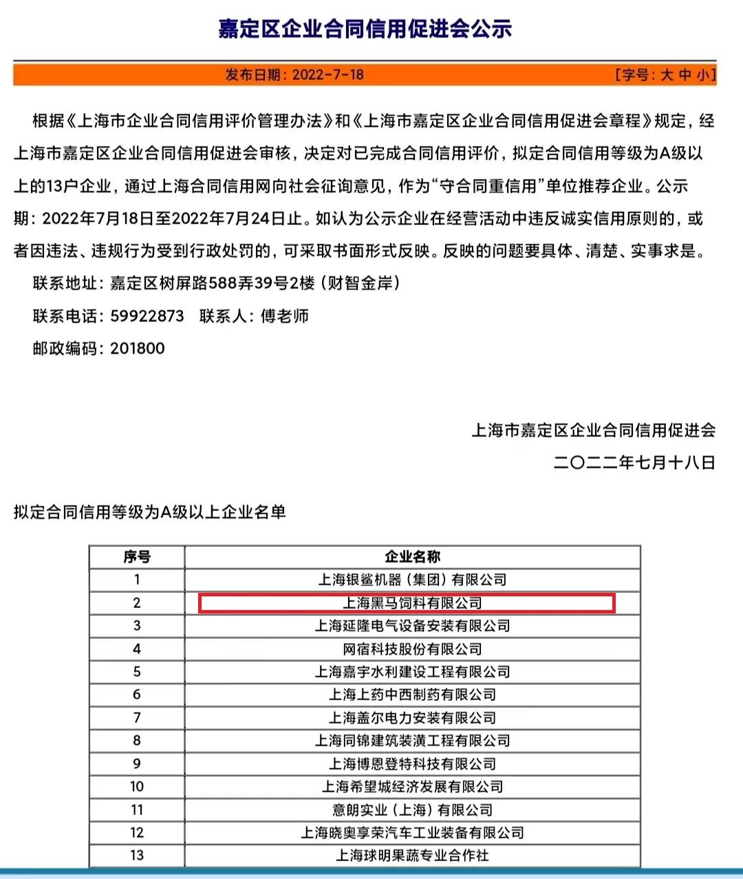 今年的評比活動從6月份開始,各區合同信用促進會先行推薦,再由上海市合同信用促進會組織專家評選,涉及企業的合同管理水平、合同履約能力、合同履約狀況和企業經營狀況、企業社會信譽以及社會責任承擔情況等多方面進行考核評定,歷時2個多月終于揭曉,并在上海市合同信用促進會官方網站進行為期一周的公示。